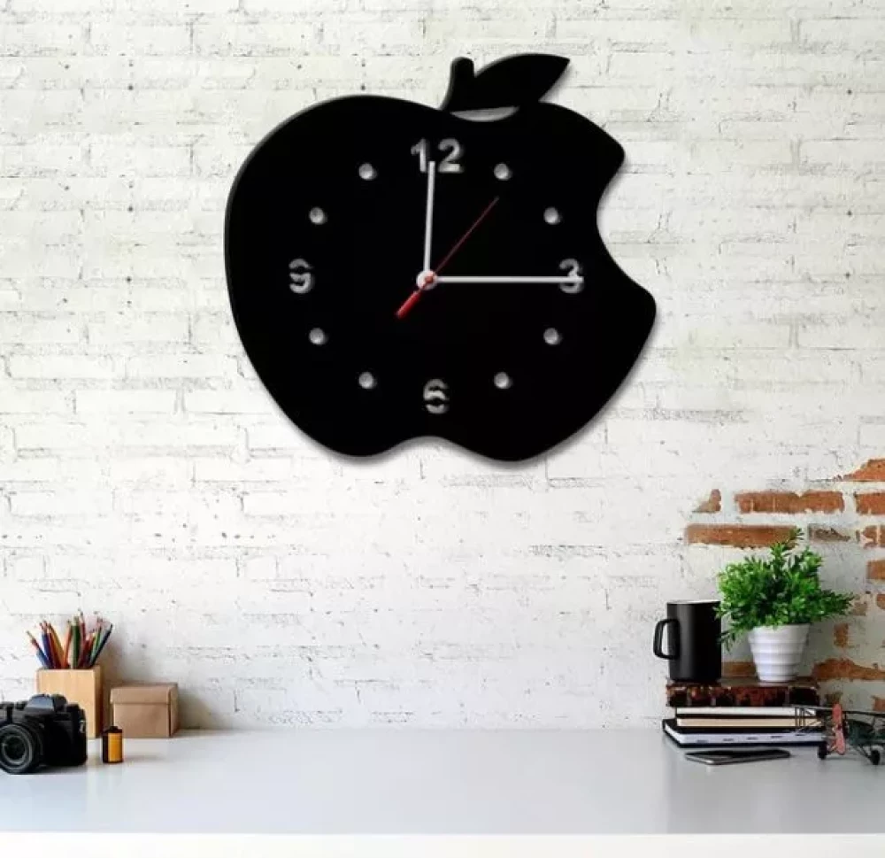 The impressive Designer Apple Design  Wooden Wall Clock is made of a laser-cut 7mm thick piece of MDF wood, professionally painted with high-quality paint, protected with a layer of transparent matte finish varnish.