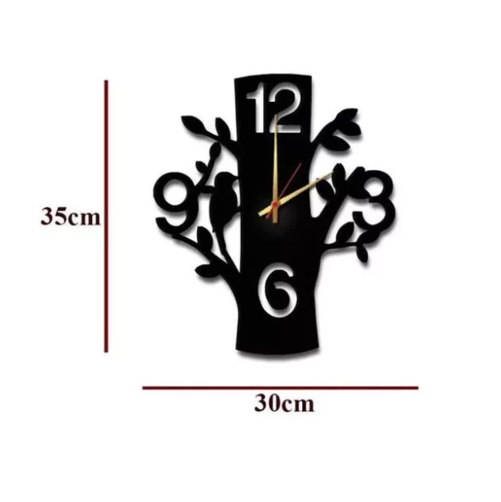 The impressive Designer Tree Shape Wooden Wall Clock is made of a laser cut 7mm thick piece of MDF wood, professionally painted with high quality paint, protected with a layer of transparent matte finish varnish.