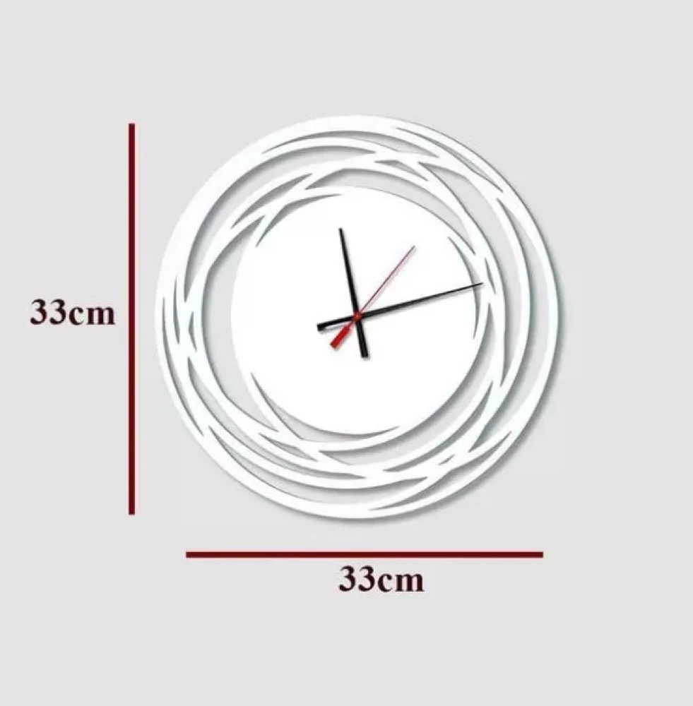 The impressive Designer and stylish  Loops Shape Wooden Wall Clock is made of a laser cut 7mm thick piece of MDF wood, professionally painted with high quality paint, protected with a layer of transparent matte finish varnish.