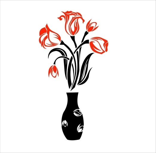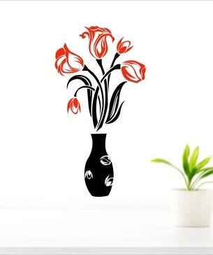 • Flower pot wall sticker Red and Black decorative flower pot sticker.