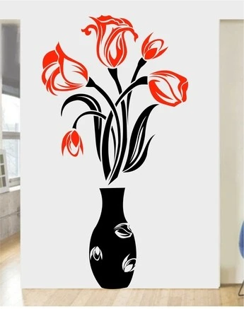 Tag: home improvement sticker flower pot wall sticker red and black flower wall sticker wall decoration