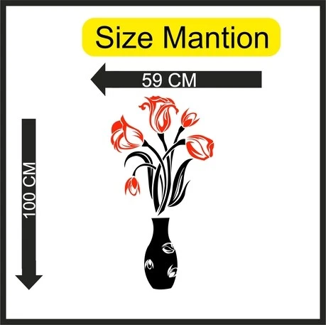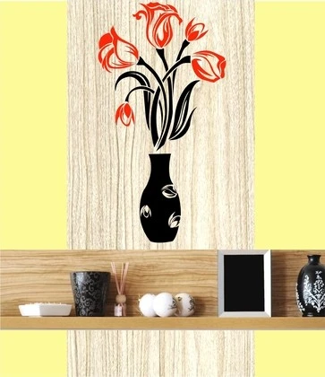 MADHUBAN DECOR Flower Pot Wall Sticker Red and Black decorative flower pot sticker for living room Self Adhesive Sticker (Pack of 1)