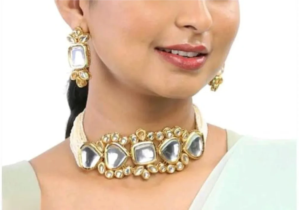 • Polki Stones: The necklace features traditional Polki stones, known for their vintage allure and brilliance.