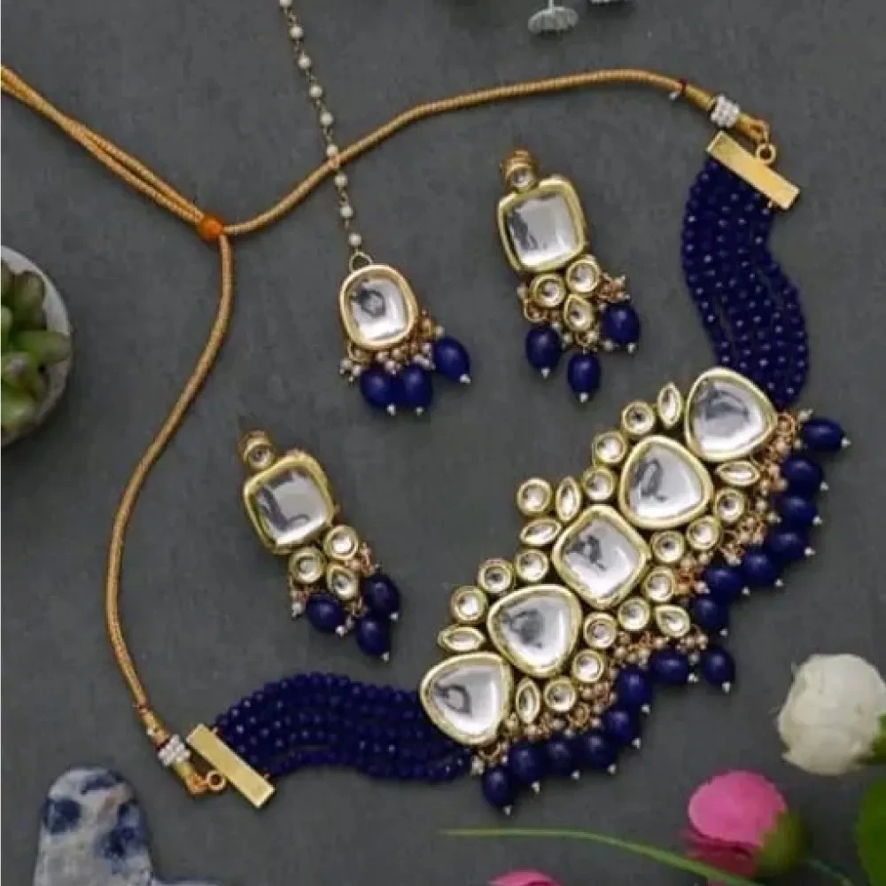 Latest Choker Design Antique Kundan Blue Necklace Set