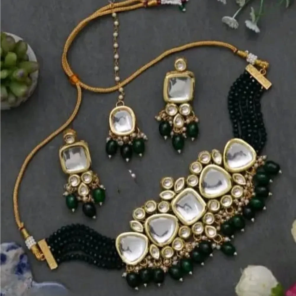 Latest Choker Design Antique Kundan Green Necklace Set
