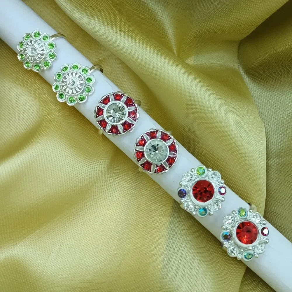Crafted with precision, these rings feature vibrant red stones set in a sleek silver band. The multicolor design adds a playful yet sophisticated flair, making them perfect for any occasion. Whether you're dressing up for a special event or adding a bit of sparkle to your everyday look, these rings are a must-have accessory.