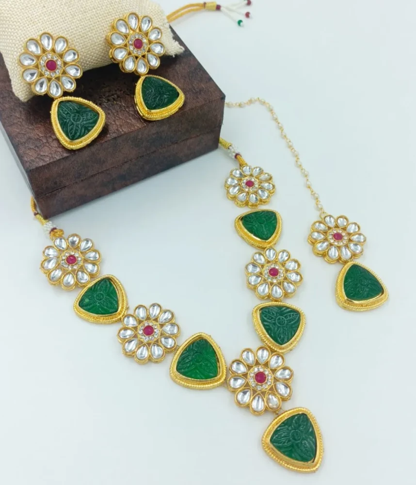 • Type: Includes a necklace, earrings, and maangtika, creating a complete and coordinated look.