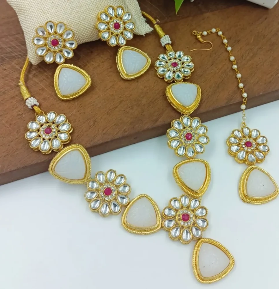• Type: Complete set including a necklace, earrings, and maangtika for a coordinated and stylish look.