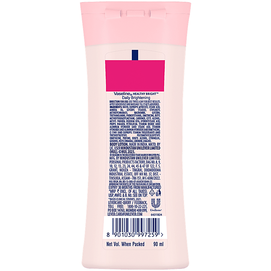 Vaseline Daily Brightening Body Lotion - For Healthy & Glowing Skin With Niacinamide, 90 ml