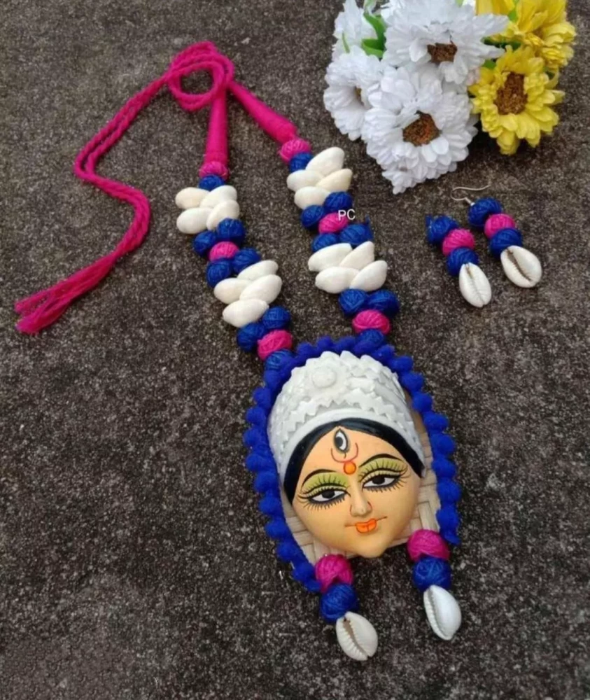 The set includes an adjustable necklace and a pair of earrings, each piece handcrafted to reflect the sanctity of the deity. The absence of plating and stones ensures that the set is lightweight and comfortable to wear, making it ideal for long hours of devotion or as a statement piece in your daily wardrobe.