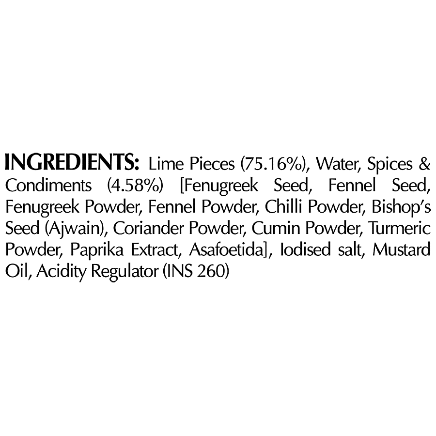 Dabur Hommade Lime Pickle is prepared from plump and juicy limes blended with spices to form a tangy and spicy combination. This traditional recipe imparts the perfect flavour and tanginess to the pickle which can be consumed with multiple dishes, meals or snacks to enjoy the perfect sour and spicy taste. It is a delight for all age groups.
