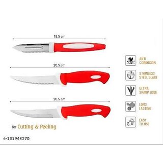 3 pc stainless steel knife set knife setpeelar set3 pc red white