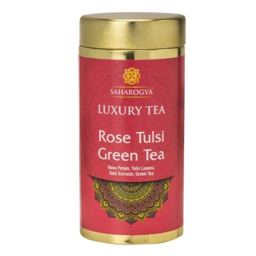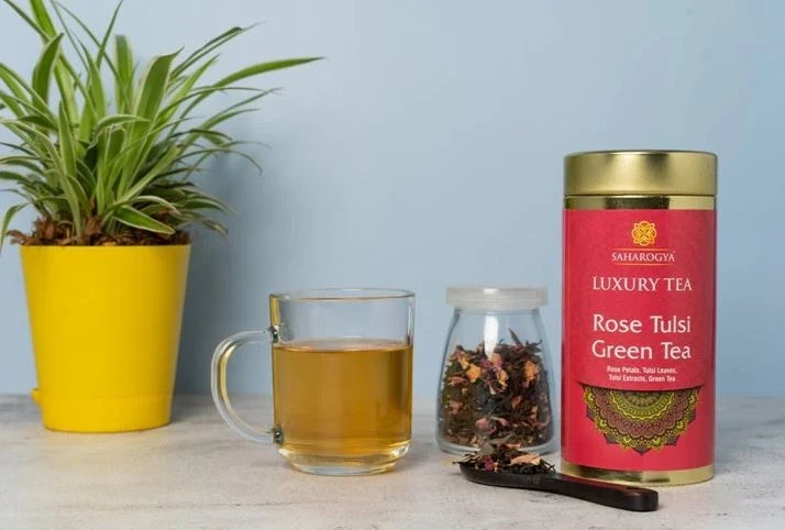 The Rose Tulsi Green Tea is a herbal concoction of rose petals, Tulsi leaves, Tulsi extract and green tea that can cure symptoms of various diseases and ailments in the body in addition to the benefits of the green tea. Sipping on to the exotic taste and strong aroma of the Rose Tulsi Green Tea will make you feel rejuvenated and stress-free and also, boost your immunity.