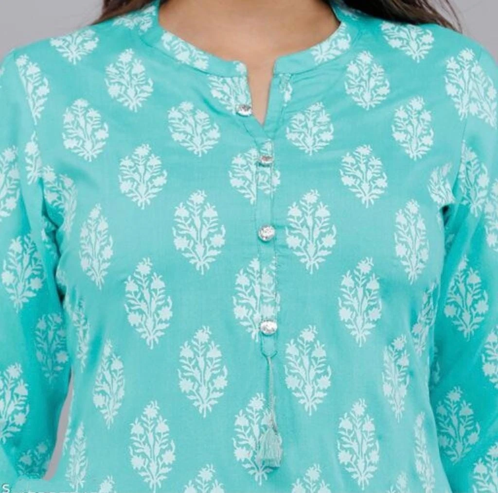 Whether you're heading to work, attending a social gathering, or simply enjoying a casual day out, the "Rayon Print Blue Kurti" effortlessly transitions from day to night. Pair it with your favorite leggings, palazzos, or jeans to create different looks, suitable for any occasion.