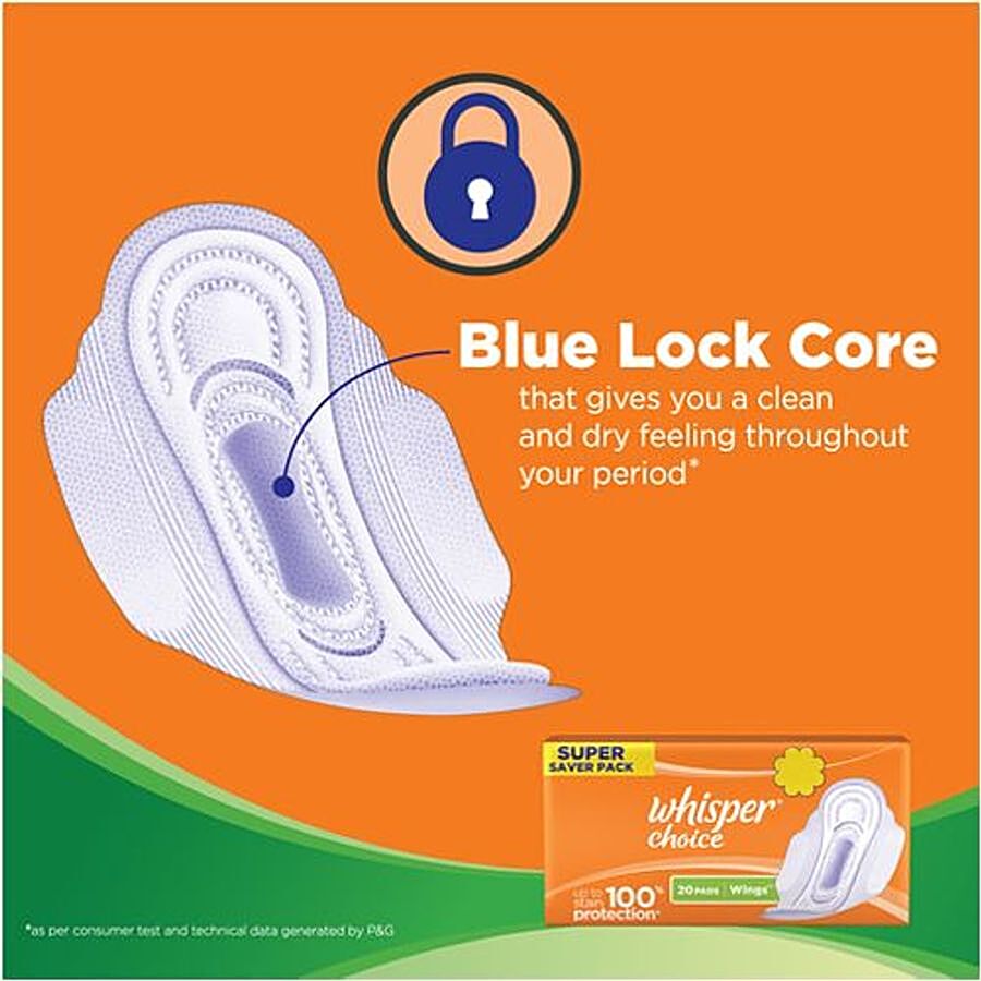 P&G is one of the largest and fastest-growing consumer goods companies in India. In 1989, P&G India launched Whisper, the breakthrough technology sanitary napkin that revolutionized the Indian feminine hygiene category. The product was designed with the personal hygiene of thousands of Indian women in mind. Get stain protection even during your periods with Whisper Choice Wings Sanitary Pads. The pads are 20% wider in the back, so you get better protection from menstrual bleeding. Feel fresh and stay protected from leakage as you start a new day with confidence.
