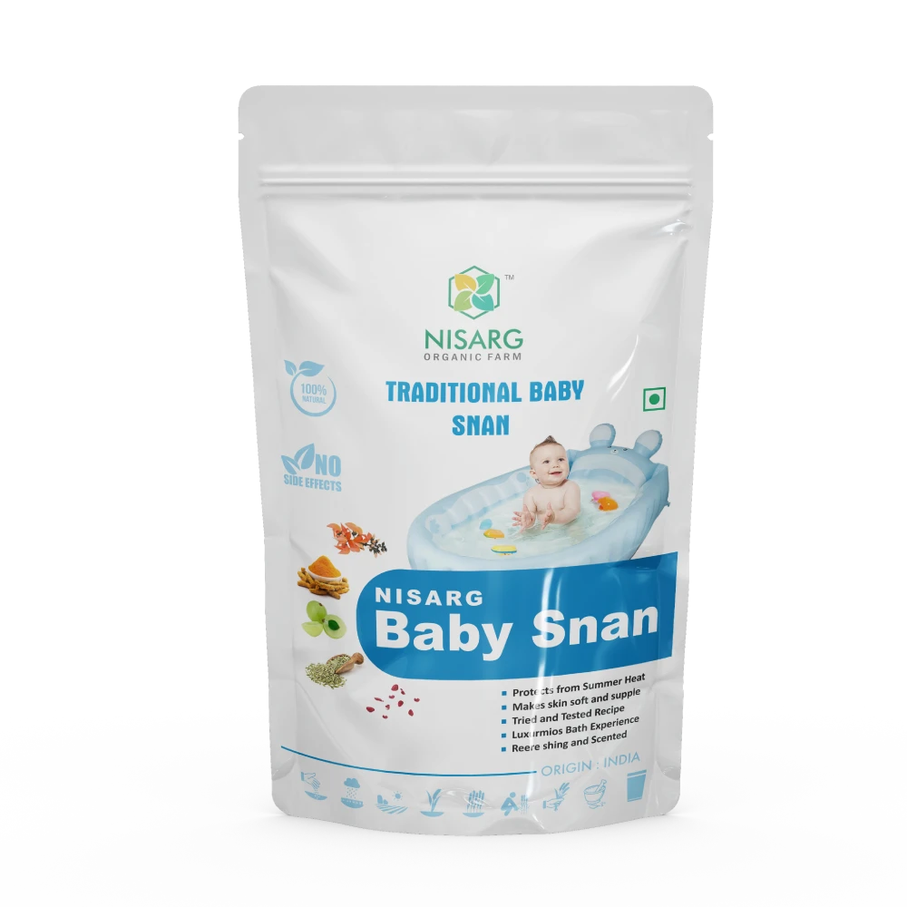 Which makes the baby's skin smooth, clean, and soft and also prevents skin damage caused by the external environment. Makes the skin beautiful and shiny. Since the baby's skin is tender, it is necessary to nourish every cell. When a baby is bathed with Nisarga Baby Snan Powder, the pores of their skin open up, providing them with enough oxygen and nutrition. Due to this the baby's skin remains smooth and shiny for a long time. Age is not visible on the skin.