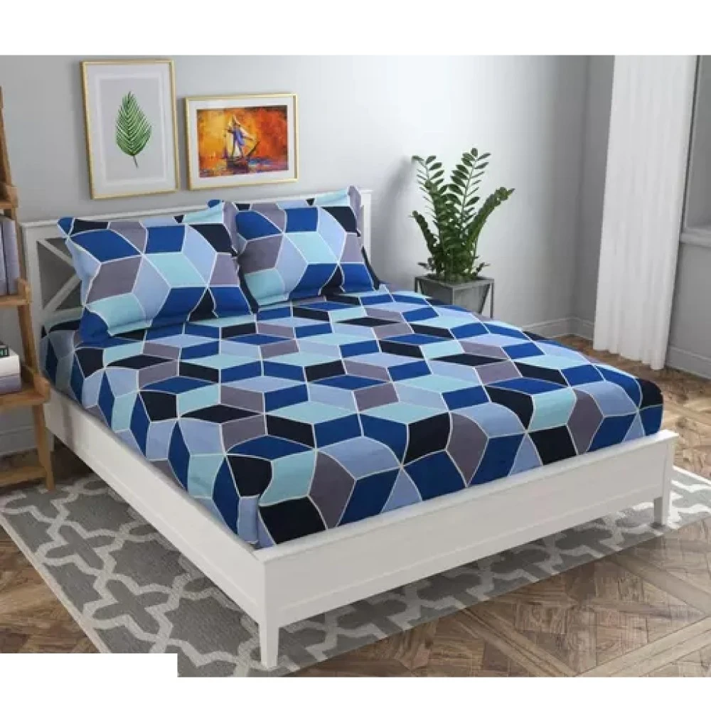 RAHUL TEXTILE printed bedsheet king size with 2 pillow cover Blue