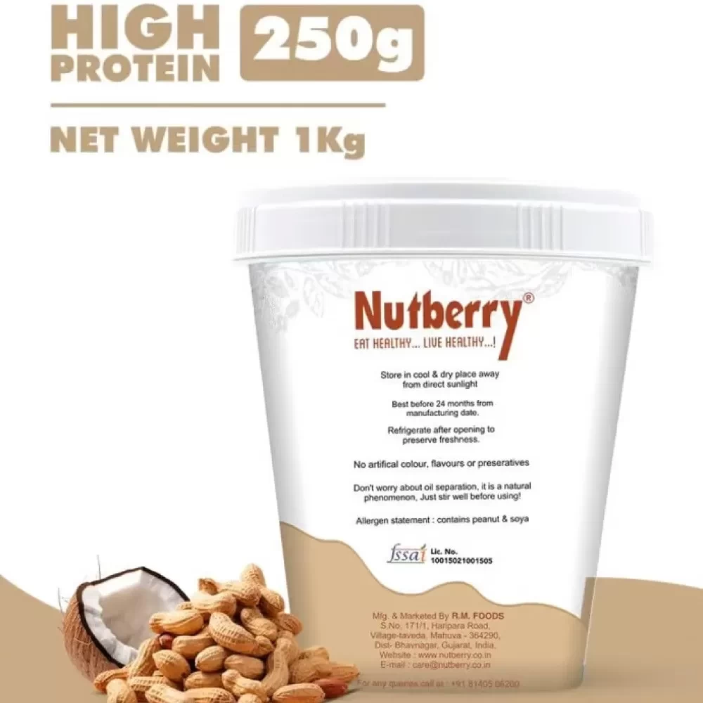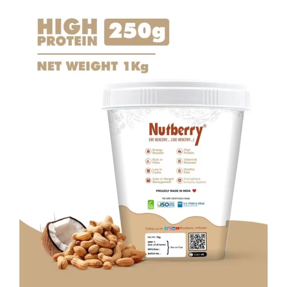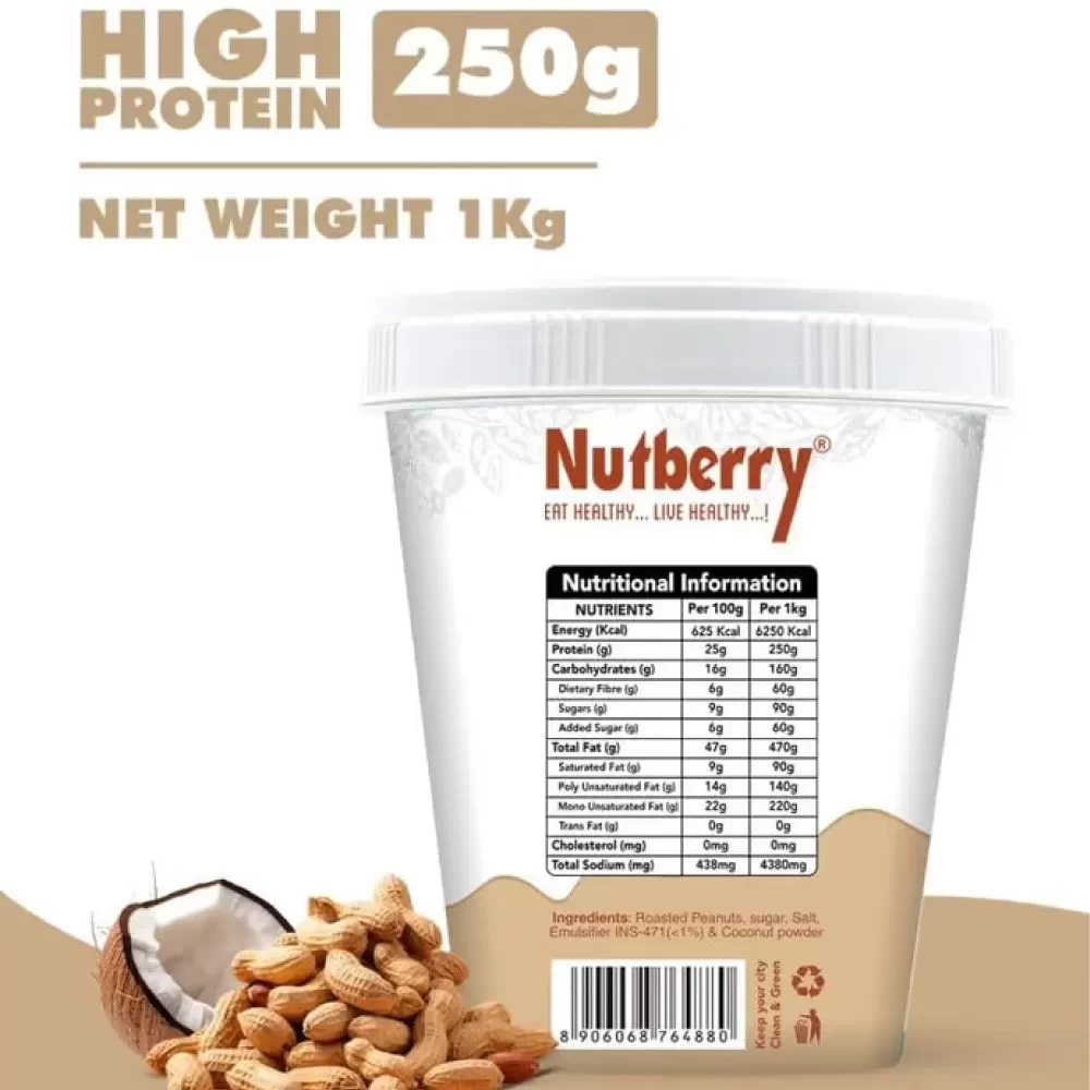 Introducing Nutberry Peanut Butter Coconut, the perfect blend of rich, creamy peanut butter and tropical coconut, now available in a convenient 1 KG bucket. Indulge in the heavenly combination of nuttiness and delightful coconut flavor, packed with nutritious goodness.
