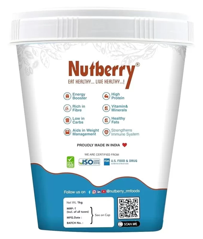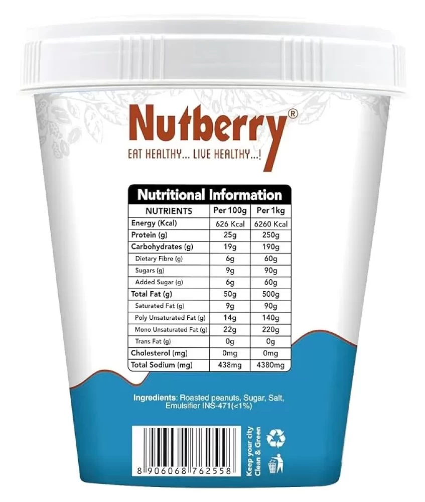 Introducing the delicious Nutberry Peanut Butter Creamy, now available in a convenient 1KG bucket! This premium peanut butter is a must-have for all peanut butter lovers out there. It is made from the finest quality roasted peanuts, ensuring a rich and creamy texture that melts in your mouth with every spoonful.