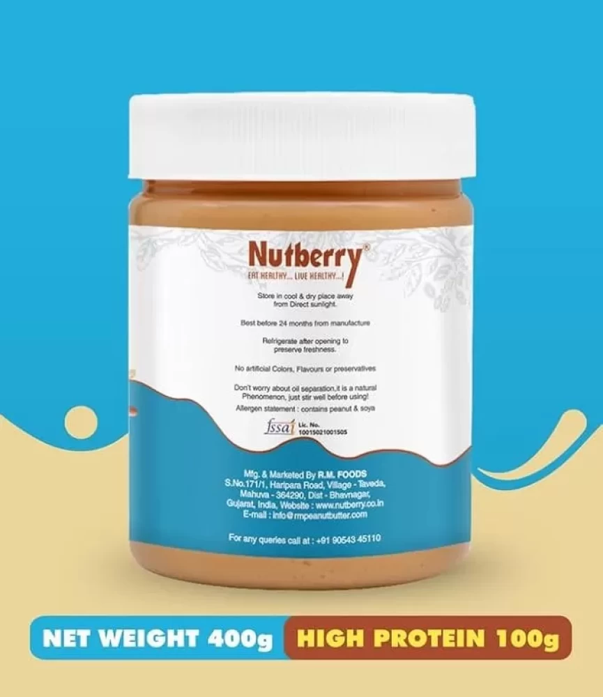 ? Creamy and rich: Indulge in the velvety texture and smooth consistency of our Nutberry Peanut Butter. Made from high-quality peanuts, it boasts a creamy, melt-in-your-mouth experience that will leave you wanting another spoonful.