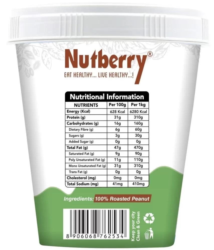 Introducing the Nutberry Peanut Butter Natural Crunchy! This delightful 500gm bucket is all you need to satisfy your peanut butter cravings. Made with the finest quality peanuts, this peanut butter is as natural as it gets.
