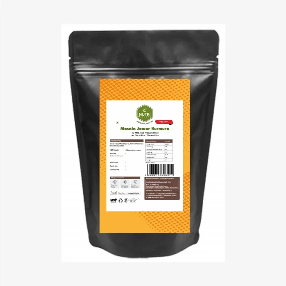 Indulge in the healthy and delicious taste of Masala Jowar Kurmura. Made from nutritious jowar flour and seasoned with a blend of mixed spices, iodized salt, and refined palm oil, this snack offers a perfect balance of flavor and health. Ideal for anytime munching, this pack of three ensures you always have a tasty and wholesome option at hand. Perfect for those who love a crunchy, flavorful snack that's also good for you.