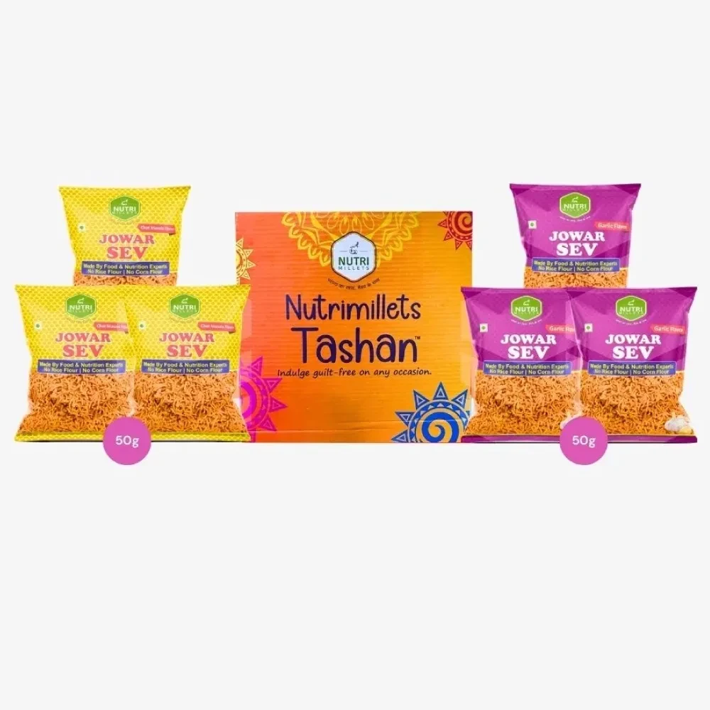 For spice lovers…spicy sev with blend of millets and legumes. Millets add the fiber contents and legumes increases the proteins. Duo of taste and health.