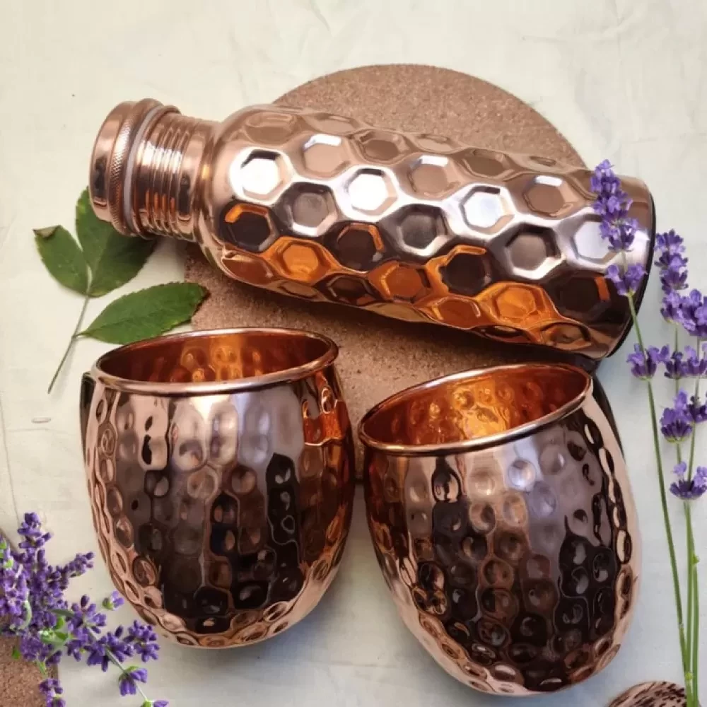 Tag: gift set combo copper kitchen ware mugs bottle gift set copper bottle hammered