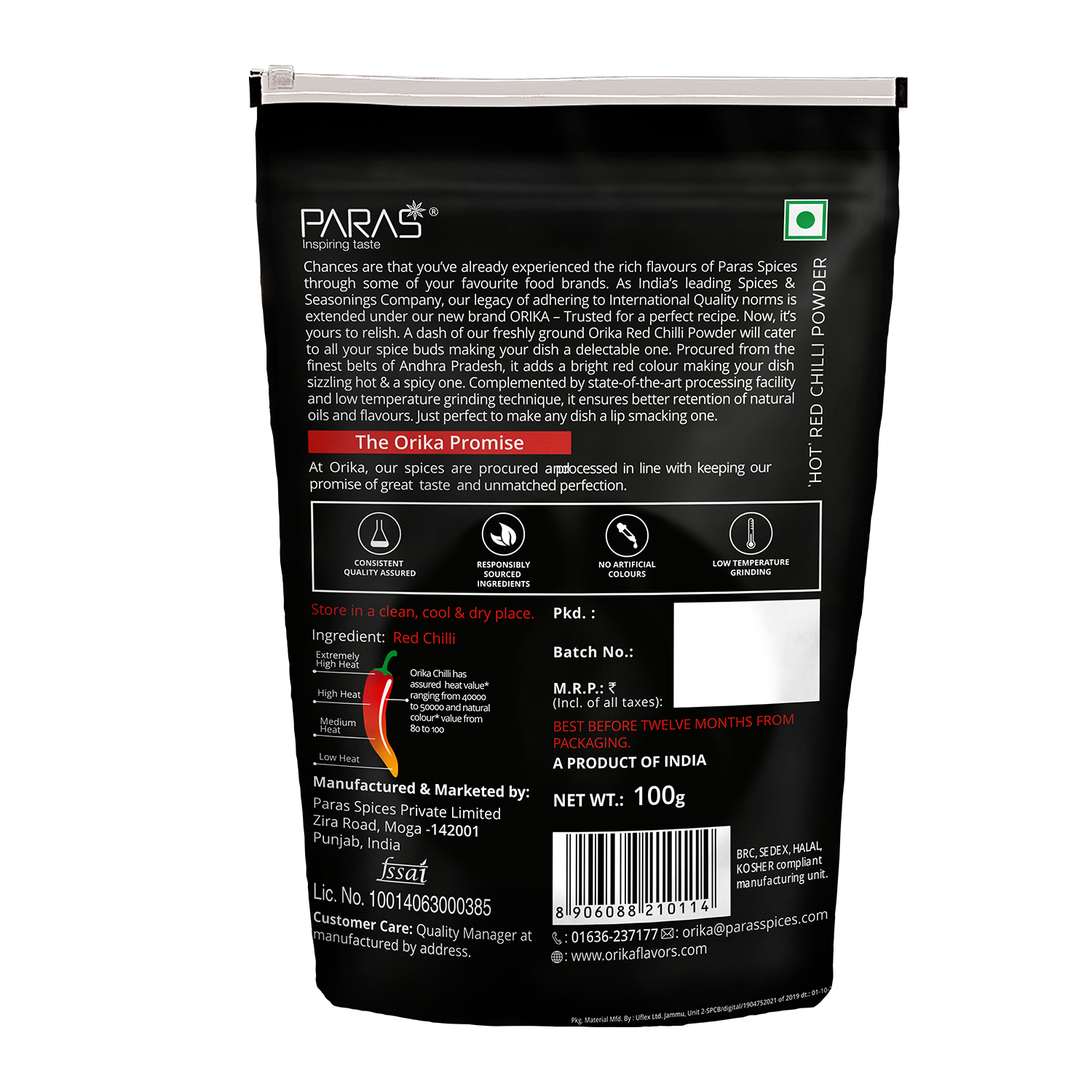 Only the best varieties of Chili from the finest belts of Andhra Pradesh make it to Orika. All foreign bodies & discolored chilies are mechanically sorted out to offer you a powder rich in Capsaicin content and ideal for satiating your craving for spicy food. Lending a great lingering aftertaste and not just bitterness, this magical ingredient imparts a perfect balance of pungency, flavor, and deep red color to your recipes.