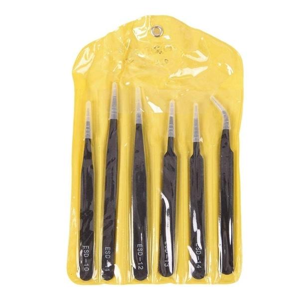 This premium 6-Piece Anti-Static Tweezer Set is designed for those who require precision, durability, and safety in their work. Ideal for electronics repair, soldering, crafting, and jewelry-making, these tweezers are made from high-quality stainless steel and feature an electrostatic discharge (ESD) safe design, ensuring safe handling of sensitive components. Whether you’re a professional technician or a DIY enthusiast, this set is your go-to tool for all your intricate, detailed tasks. Key Features: ✅ 6-Piece Comprehensive Set: This set includes six different tweezers with various tip shapes and sizes, allowing you to tackle a range of tasks such as PCB assembly, component placement, soldering, and delicate repairs. From fine-point tips for precision handling to flat tips for broad gripping, this set has everything you need. ✅ ESD Safe Technology: The tweezers are equipped with ESD-safe features to prevent the buildup of static electricity, protecting sensitive electronic components from damage. This is especially important when working with delicate chips, capacitors, and circuit boards, where even the smallest discharge can lead to malfunctions or failure. ✅ Premium Stainless Steel Construction: Crafted from high-grade stainless steel, these tweezers are corrosion-resistant, durable, and built to last. The fine tips are incredibly sharp and perfectly aligned for maximum precision, making them suitable for a variety of delicate tasks, from soldering and jewelry repair to model building and crafting. ✅ Ergonomic Design: The ergonomic design ensures a comfortable grip, reducing hand strain during prolonged use. Whether you’re working on a small-scale project or a more extensive task, the lightweight construction and well-balanced feel of the tweezers will provide you with excellent control and ease of use. ✅ Versatile Use Cases: Perfect for multiple applications, this set is ideal for electronics repair, circuit board work, jewelry crafting, watch repair, model-making, and other fine detail tasks. The tweezers also work well for crafting, such as precision gluing, beadwork, and other small assembly tasks that demand attention to detail. ✅ Precise and Accurate Handling: Each tweezer in the set has been designed for fine-tuned handling, providing excellent grip for small parts. Whether you're working with tiny components or intricate details, you’ll be able to pick up, place, and position components with unmatched accuracy. Why Choose This Tweezer Set? ✅ Anti-Static Protection: Protect your delicate electronics and parts from the risk of static damage with our ESD-safe design. No more worrying about accidental discharges damaging sensitive components. ✅ Built for Professionals & DIYers: Whether you’re a professional technician or a hobbyist, this set is perfect for anyone who needs reliable, high-quality precision tools. From detailed electronics work to crafting, you’ll get the accuracy and control you need for the best results. ✅ Long-lasting Durability: Made to last, these tweezers are resistant to wear, corrosion, and staining, ensuring they stay functional for years to come. They’re built to handle the tough demands of professional work and DIY projects alike. ✅ Compact & Easy to Store: The set is compact and comes in a convenient storage case that keeps the tweezers organized and easily accessible. Perfect for on-the-go professionals and DIYers who need their tools close at hand. Perfect For: Electronics Repair: Work on circuit boards, resistors, capacitors, and microchips with ease and precision. Soldering: Pick up, position, and solder tiny components in tight spaces with ease. Crafting: Ideal for jewelry-making, model-building, and detailed DIY projects. Jewelry Repair: Handle delicate gemstones and fine details in jewelry-making projects. Order your 6-Piece Anti-Static Tweezer Set today and experience the precision, quality, and protection you need to tackle all your repair, crafting, and DIY projects with confidence!