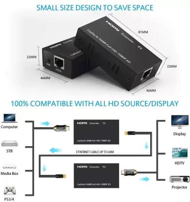 Brand Generic Connector Type HDMI Cable Type HDMI Compatible Devices Projector, Monitor, Television, DVD Player Special Feature High Speed HDMI Extender – HDMI to RJ45 Ethernet Converter, 1080P Full HD The HDMI Extender – HDMI to RJ45 Ethernet Converter is a powerful solution for extending HDMI signals up to 196 feet (60m) or 394 feet (120m) using a single CAT5e/6 Ethernet cable. Designed for home theaters, professional AV setups, conference rooms, and surveillance systems, this extender provides crystal-clear 1080P Full HD video and audio transmission without loss of quality. Equipped with intelligent transmission technology, the built-in chip effectively reduces ghosting and noise, ensuring a stable and sharp display. The HDMI repeater comes with a compact, durable metal body, featuring high hardness, strong pressure resistance, and excellent heat dissipation, making it a long-lasting and reliable choice for both commercial and residential use. Key Features: Long-Distance HDMI Transmission – Supports up to 60m (196ft) with CAT6 cable and 120m (394ft) with high-quality CAT6 for reliable signal extension. Full HD 1080P & High Compatibility – Supports 1920x1080P@60Hz resolution, ensuring crisp and clear video quality. Pure Hardware Transmission – Plug & Play – No drivers or additional power supply needed, following IEEE-568B standard for easy installation. High-Quality Build & Performance – Frosted metal body ensures durability, heat resistance, and long lifespan. Stable Signal with Noise Reduction – Intelligent transmission technology eliminates ghosting and interference, delivering a smooth experience. Wide Compatibility – Works with HDTVs, set-top boxes, Blu-ray/DVD players, gaming consoles (PS4, PS5, Xbox), projectors, home theaters, and surveillance systems. TX & RX Kit Included – Comes with a transmitter (TX) and receiver (RX), ensuring efficient HDMI signal extension. Uses & Applications: Home Theaters – Extend HDMI signals from a Blu-ray/DVD player or gaming console to your TV or projector. Conference Rooms & Office Setups – Transmit video output from a laptop or PC to large display screens for presentations. Security & Surveillance Systems – Extend HDMI feeds from CCTV DVRs/NVRs to monitoring screens. Hotel & Commercial Displays – Perfect for hotel rooms, advertising screens, and digital signage solutions. Educational Institutions – Ideal for classrooms, lecture halls, and training centers requiring long-distance HDMI transmission. How to install an HDMI extender Follow these steps to install and set up your HDMI Extender for seamless transmission: Check Display & Signal Player – Connect via HDMI cable & verify functionality. Connect Sender (TX) to Signal Player – Use an HDMI cable. Connect Receiver (RX) to Display Device – Use another HDMI cable. Link TX & RX with CAT5E/6 Cable – Ensure a secure connection. Power On TX & RX – Plug in power adapters. Tips: Use CAT6 for best performance, avoid cable bending, check power indicators.