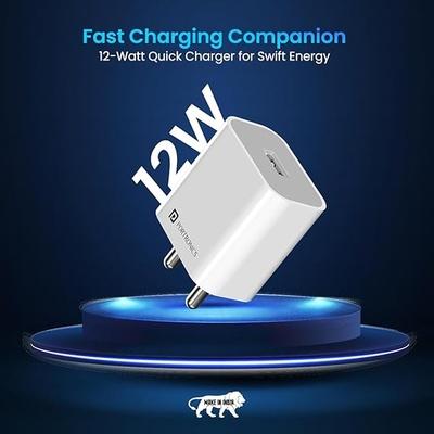 Model : ‎Adapto 12 C Item model number ‎ ‎POR-10042 Colour ‎ White Other display features ‎ ‎Wireless Item Weight ‎80 g Introducing the Adapto 12, your ultimate wall adapter solution! With a powerful USB port at 2.4A, this 12-watt, Made In India charger quickly charges all your devices from smartphones to earbuds. Its intelligent and safe charging technology ensures protection against overheating and overcharging, while its compact and lightweight design (60 grams) adds elegance to your charging process no ho Say goodbye to clutter and say hello to efficiency! Adapto 12 C One USB 2.4A Port: The Adapto 12 is a single 2.4A wall adapter, allowing you to power all your USB gadgets with one adapter—no need to carry multiple chargers. Quick Charging Solution: With an impressive 12 watts of power, this Made in India Mobile Charging Adapter ensures that your devices get charged quickly, keeping you moving. Smart & Safe Charging: This BIS certified, USB charger provides power after identifying your device’s needs. It protects your devices from overheating, over-humidity and over-charging with its fireproof body. Compact design: The slim, lightweight design (only 60 grams!) of this fast mobile charger takes up minimal wall socket space, while adding a touch of elegance to your charging setup