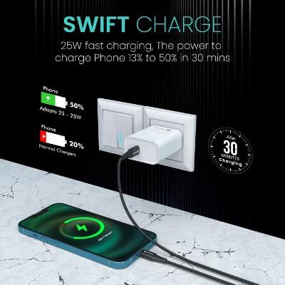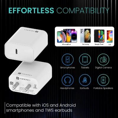 portronics adapto 25 25w super fast type c pd wall charger for iphone 1514131211 all pro max series samsung galaxy samf