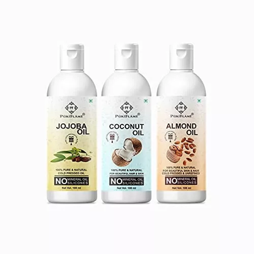 PuriFlame 100% Pure Jojoba Oil 100ML and Coconut Oil 100ML and Almond Oil 100ML Combo