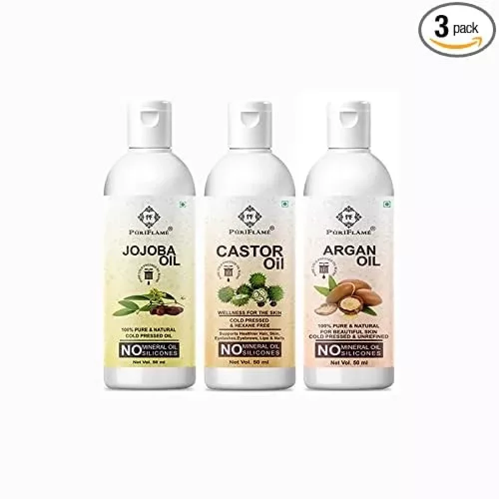 PuriFlame 100% Pure Jojoba Oil 50ML and Castor Oil 50ML and Argan Oil 50ML Combo