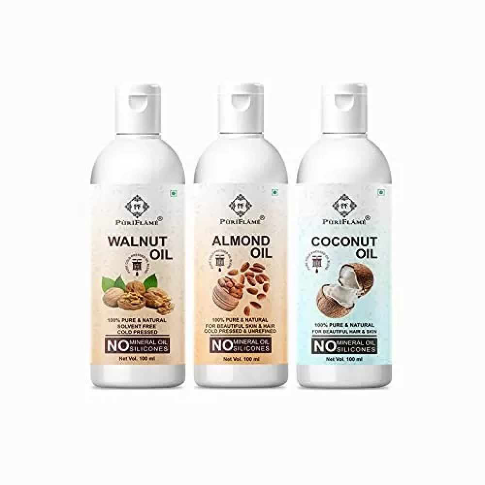 PuriFlame 100% Pure Walnut Oil 100ML and Almond Oil 100ML and Coconut Oil 100ML For Hair Pack Of 3