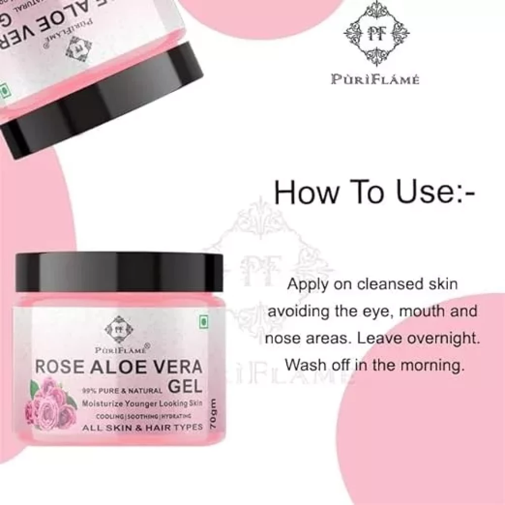 PuriFlame 99% Pure Rose Aloe Vera Gel for Face Skin and Hair 70GM Pack Of 1