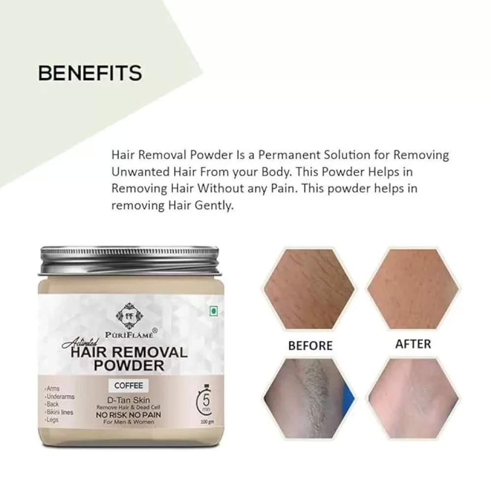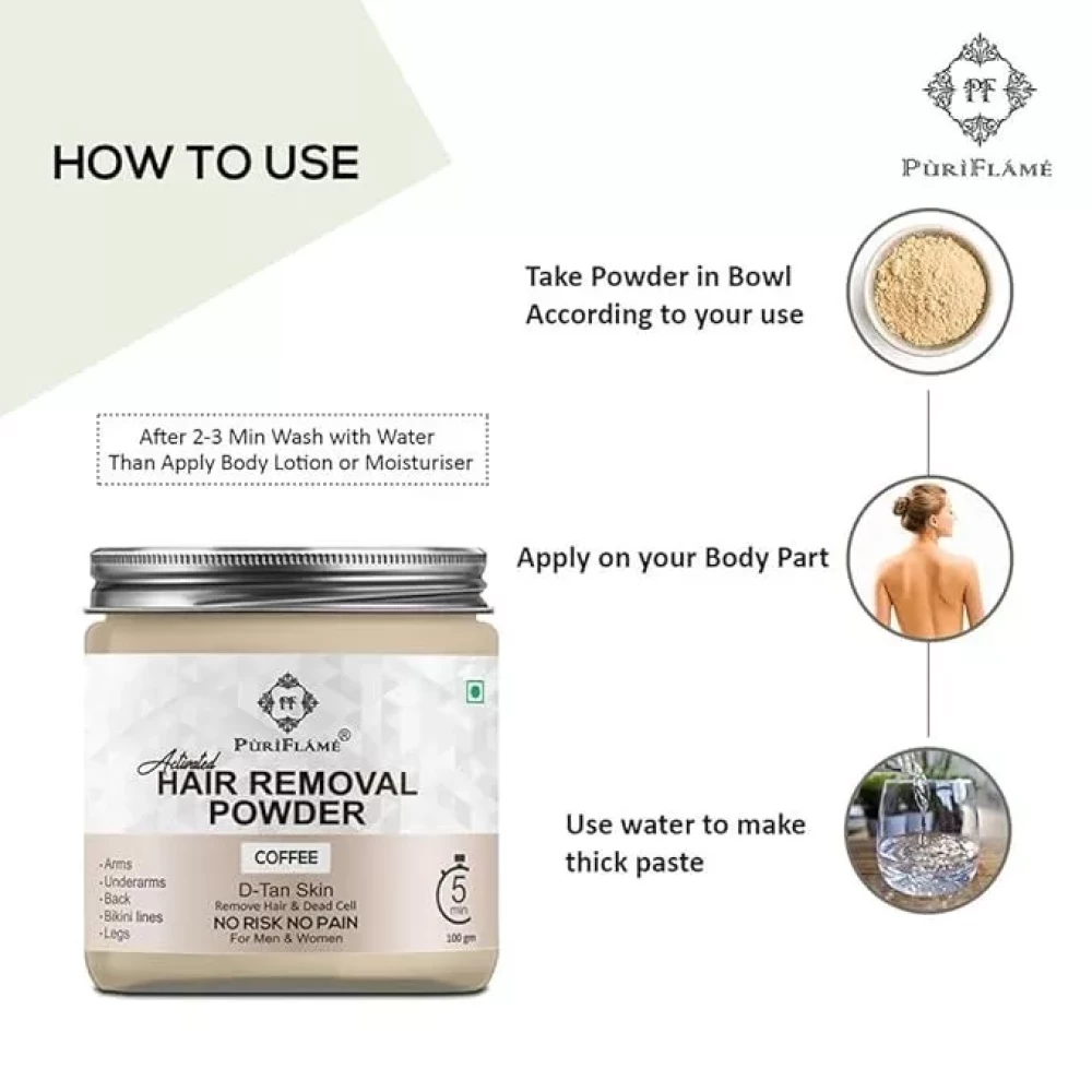 PuriFlame Activated Hair Removal Powder Coffee Fragrance For Underarms 100 gms