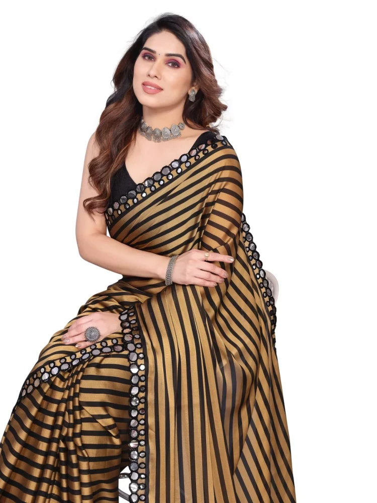 Elevate your ethnic wardrobe with the exquisite charm of our Black Berry Leriya Gold Saree With Mirror Lace, a timeless masterpiece that exudes sophistication and grace. Crafted with meticulous attention to detail, this saree is designed to make a statement at any special occasion, from weddings to festive celebrations.