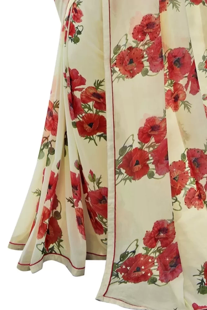 Tag: printed saree blouse women wear ethnic wear women clothes clothing cream red flower girls georgette printed saree cream red flower