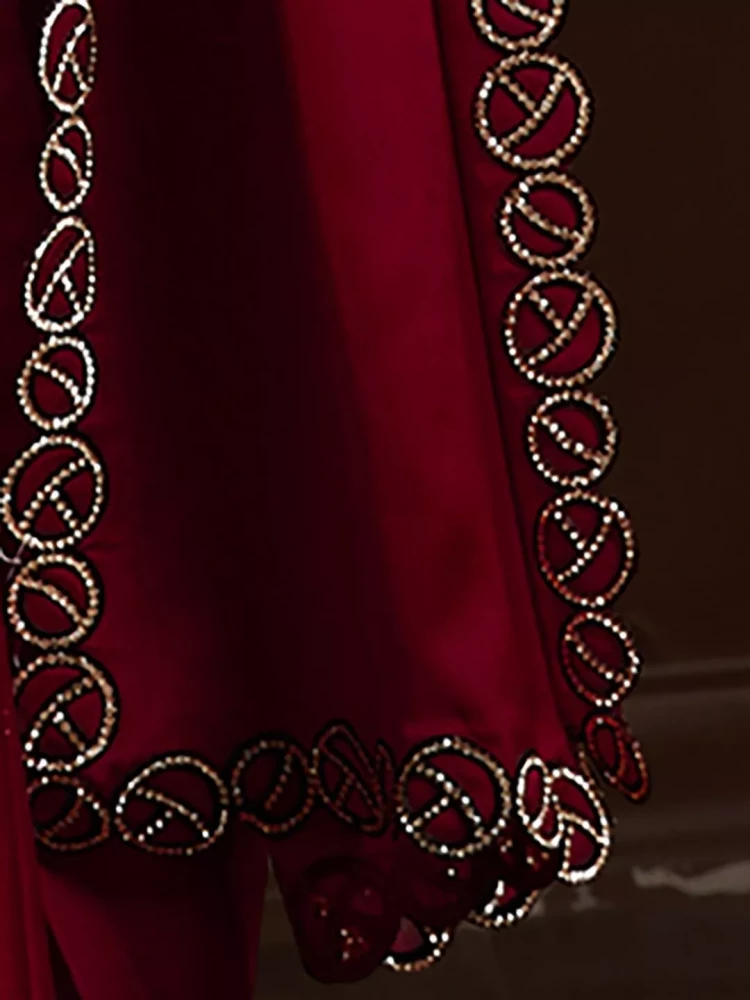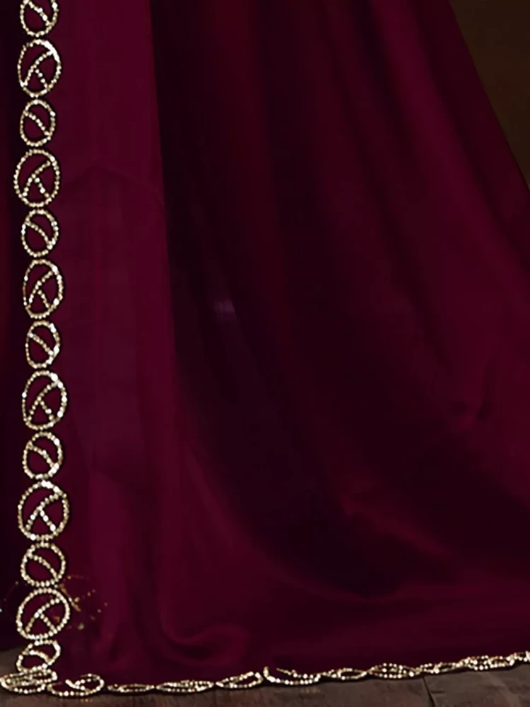 Embroidered Bollywood satin chiffon Maroon saree with stone work