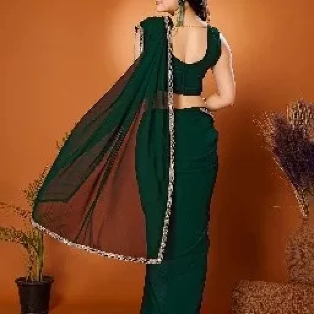 Georgette Green Saree With Miorror Border