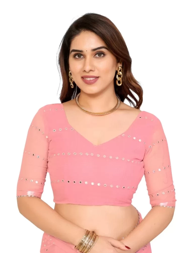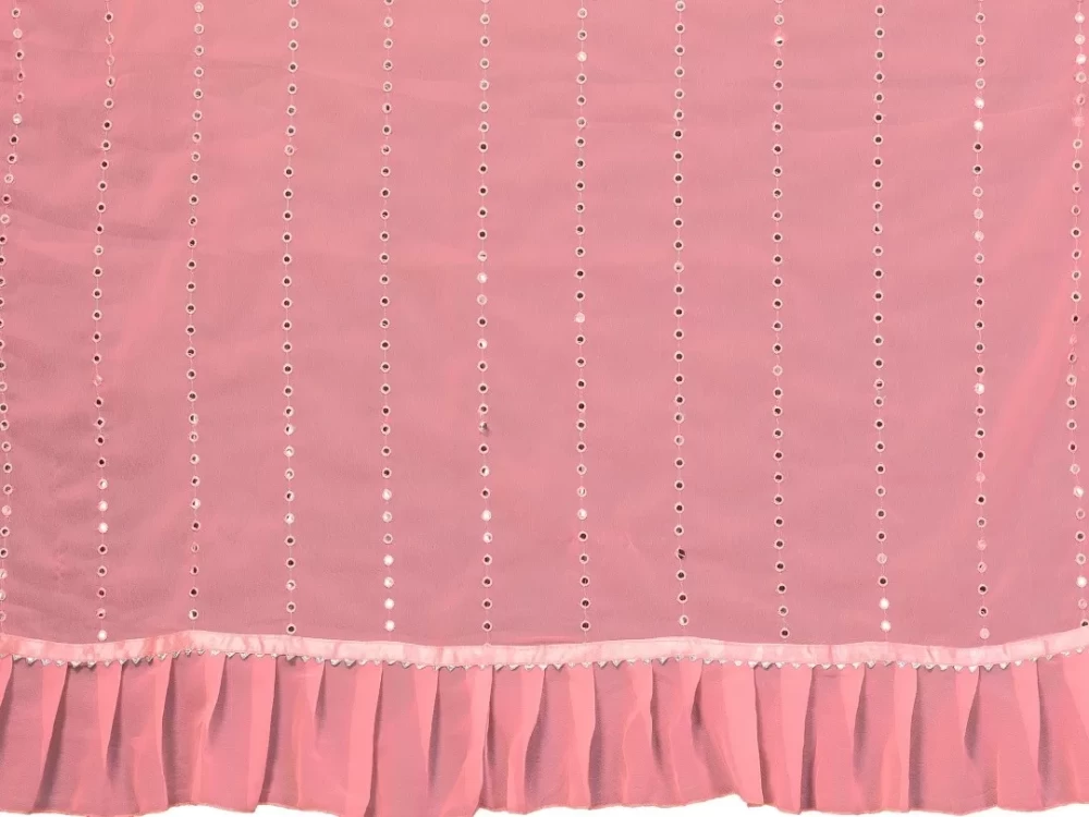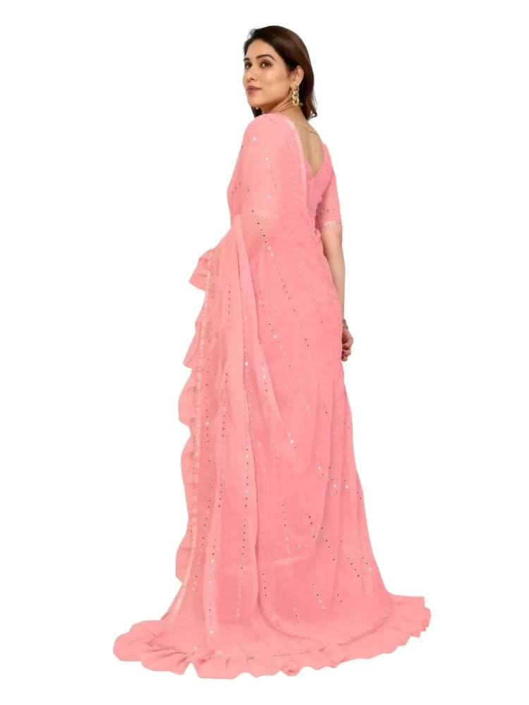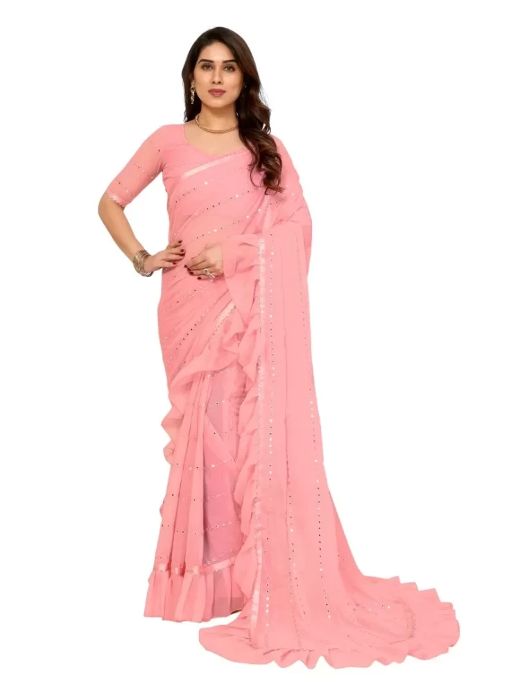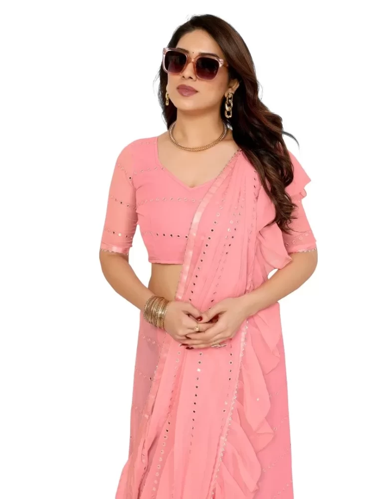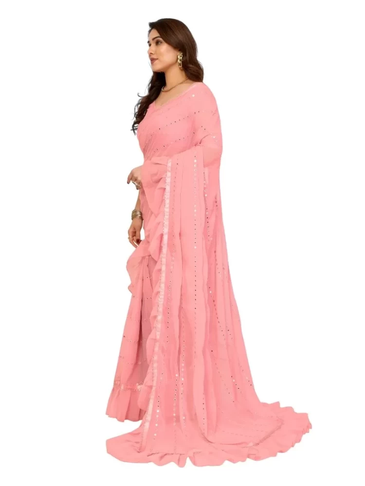 Georgette Light Pink Ruffal Saree With Mirror Work