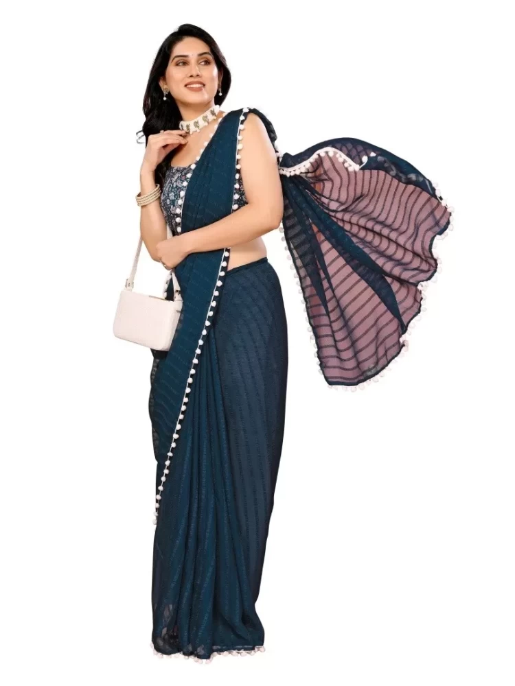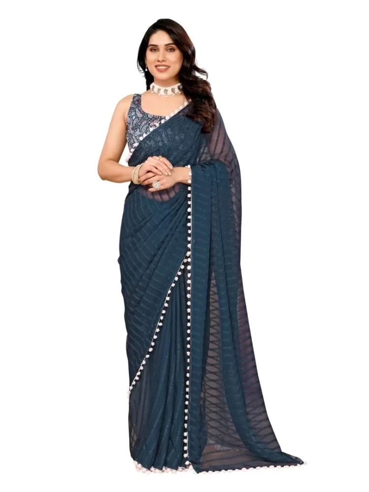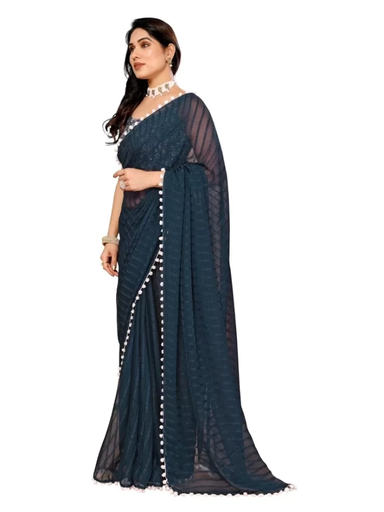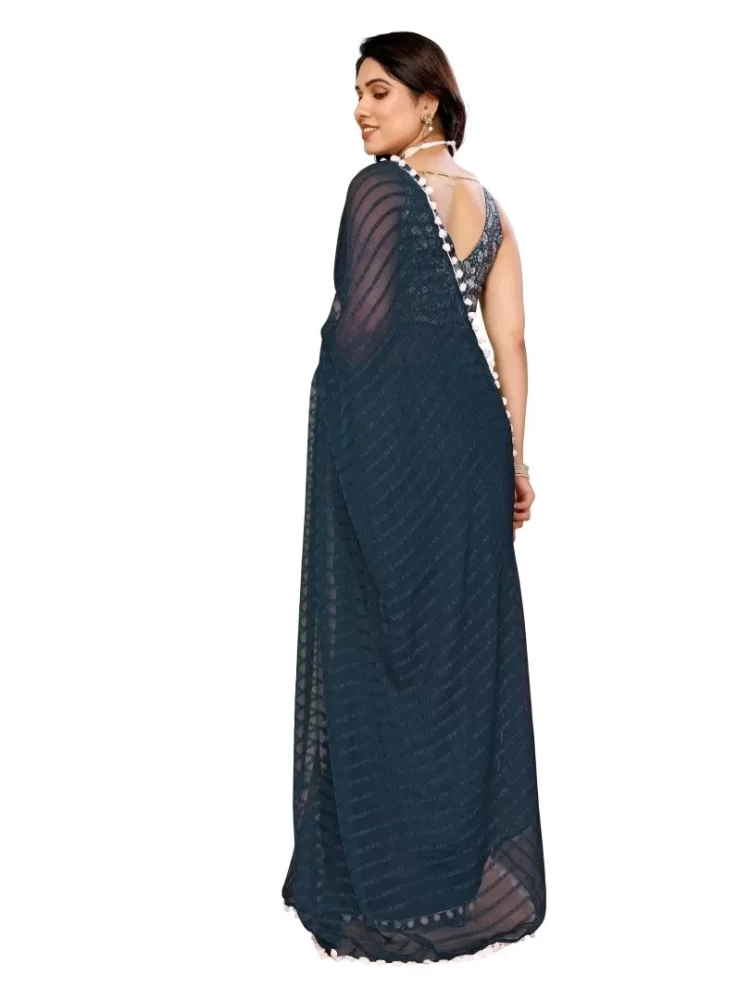 Perfect for parties, weddings, or festive celebrations, this saree promises to make you stand out with its blend of traditional charm and contemporary style. Pair it with statement jewelry and heels to complete your look.