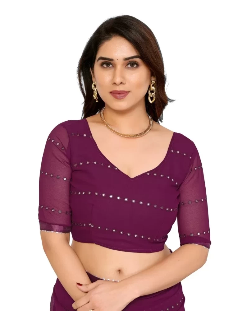 Tag: saree women wear ethnic wear women clothes clothing purple girls mirror georgette ruffal