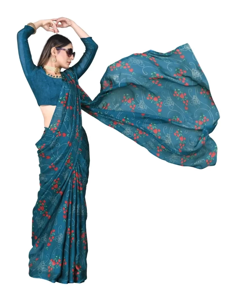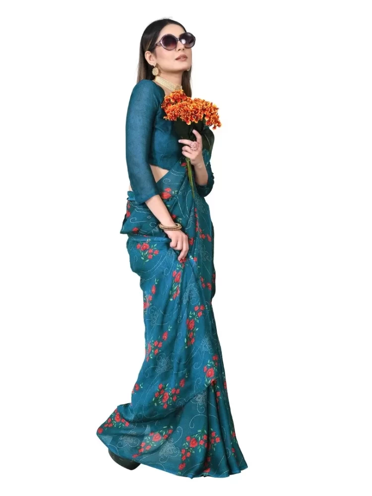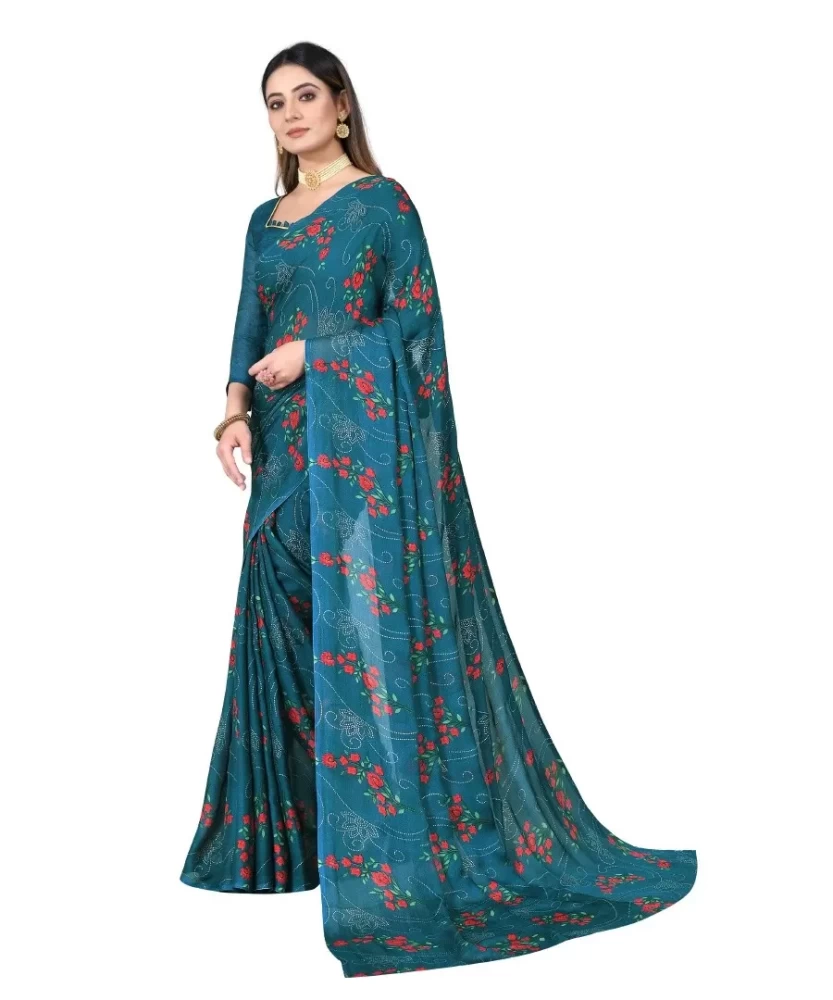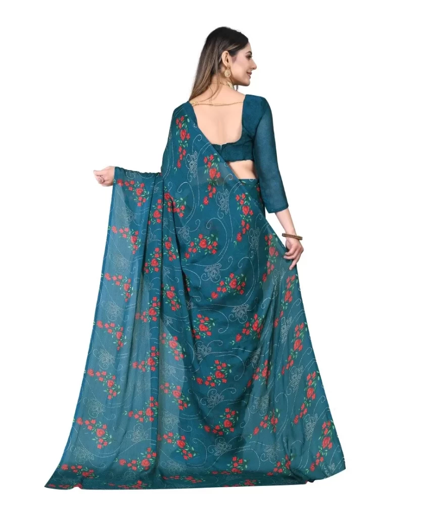 Tag: printed saree women wear ethnic wear women clothes clothing chiffon girls rama printed saree