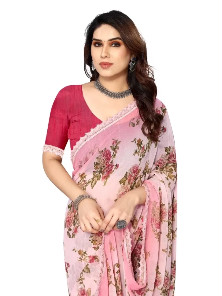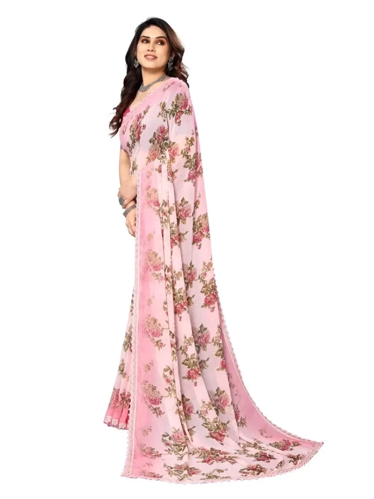 Tag: printed saree women wear ethnic wear women clothes clothing pink girls light light pink georgette