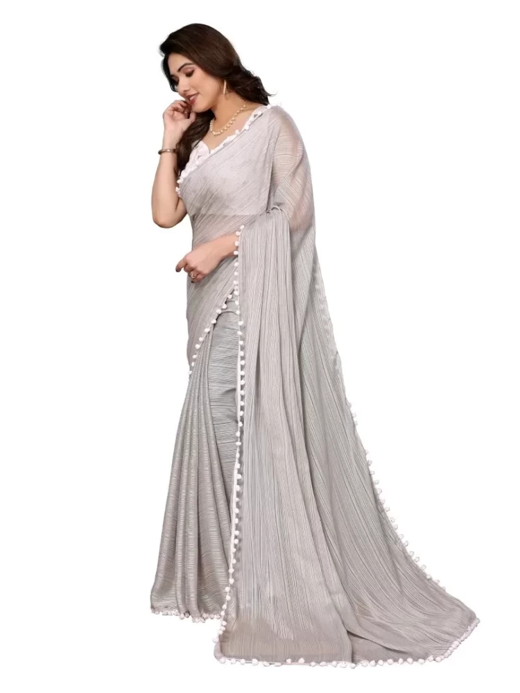 Tag: saree women wear ethnic wear women clothes clothing polyester grey girls plain krishna