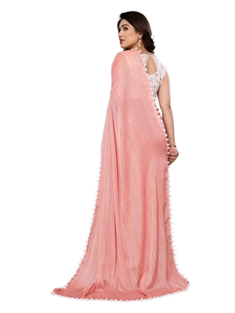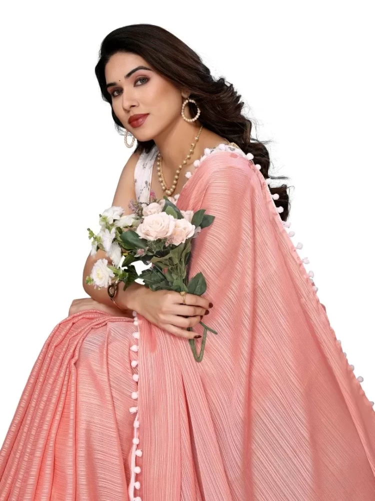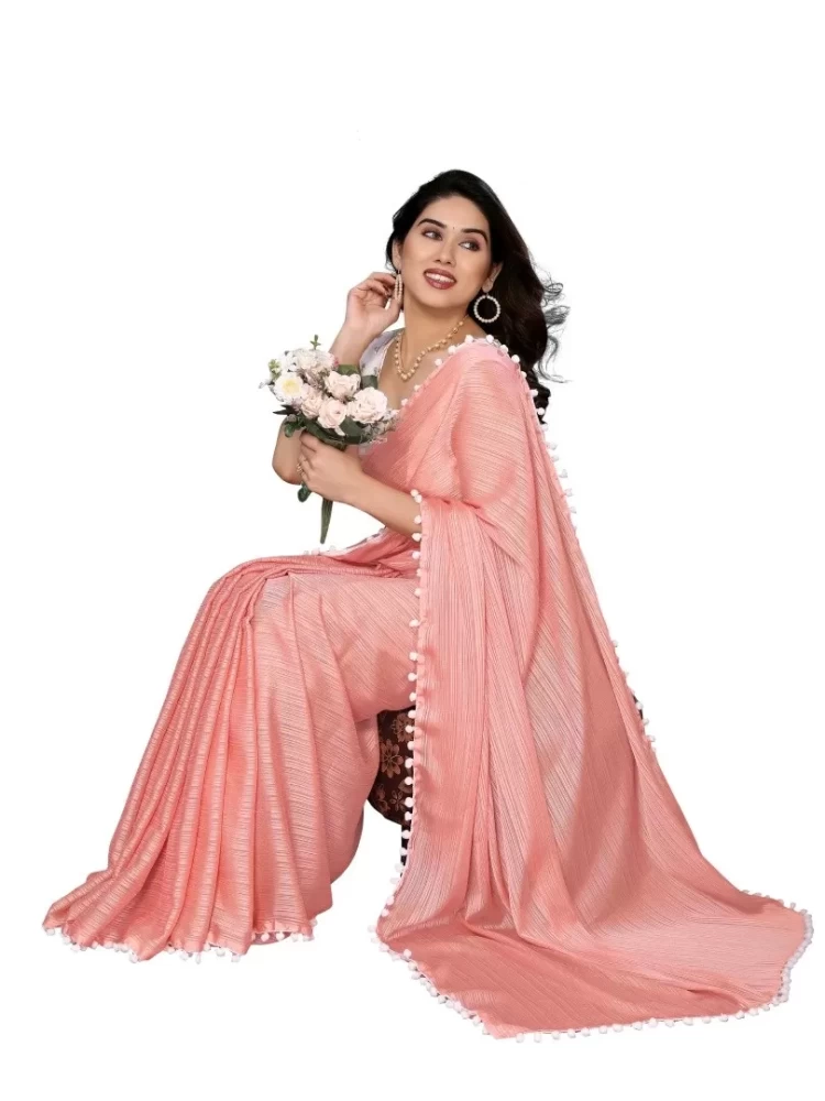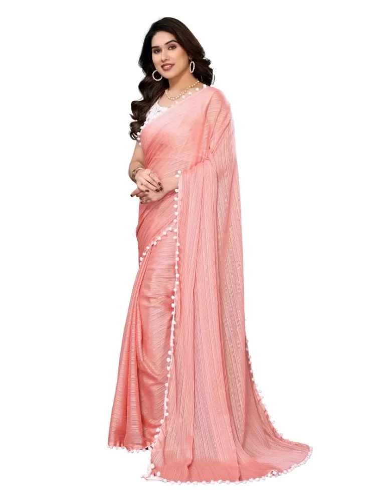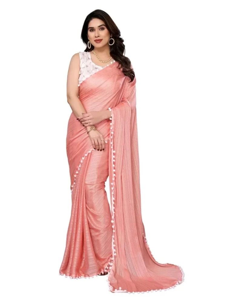 Tag: saree women wear ethnic wear women clothes clothing polyester peach girls plain krishna