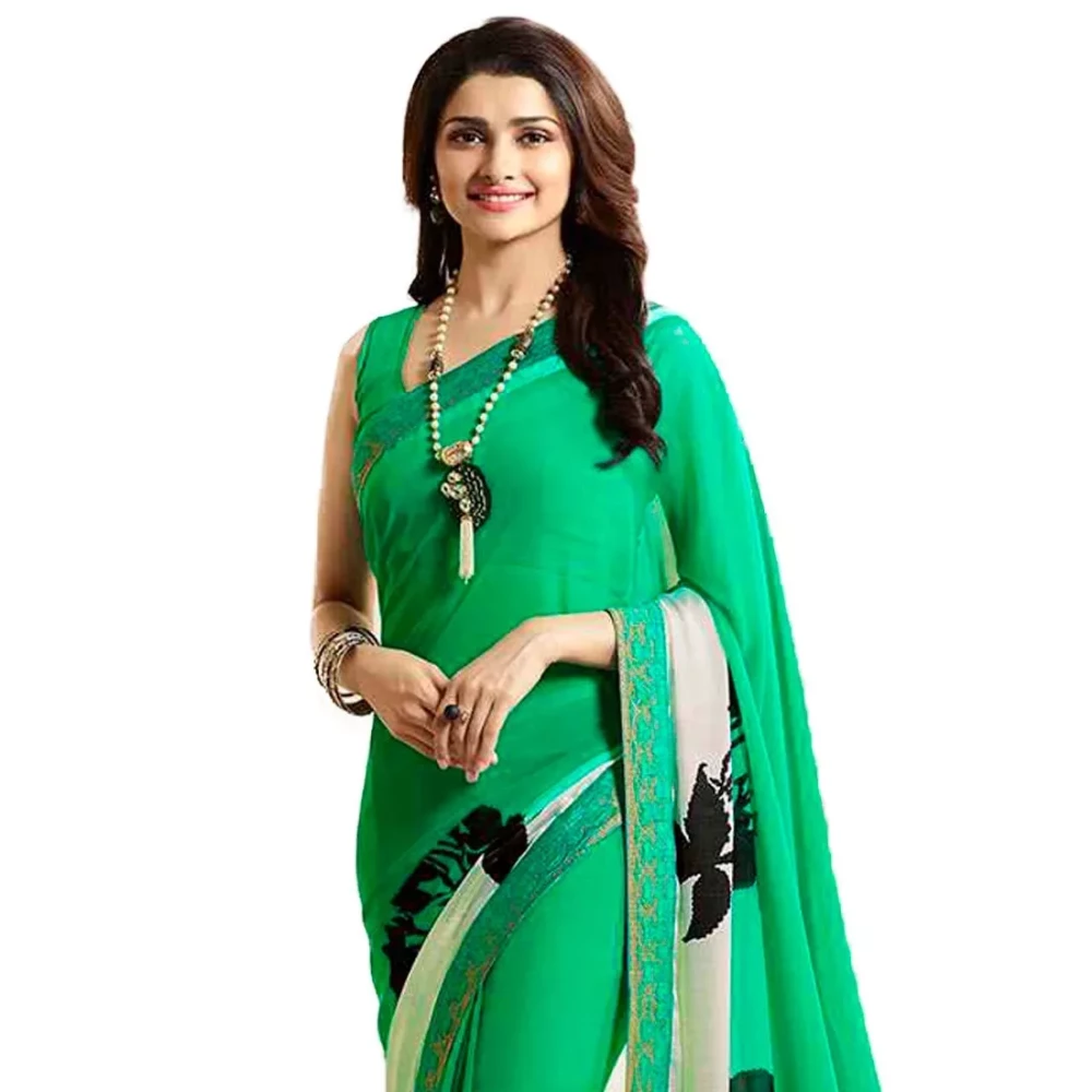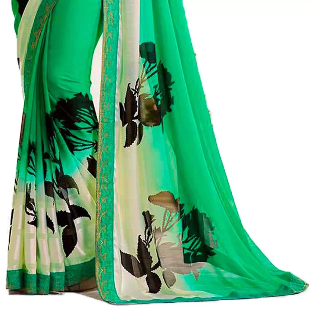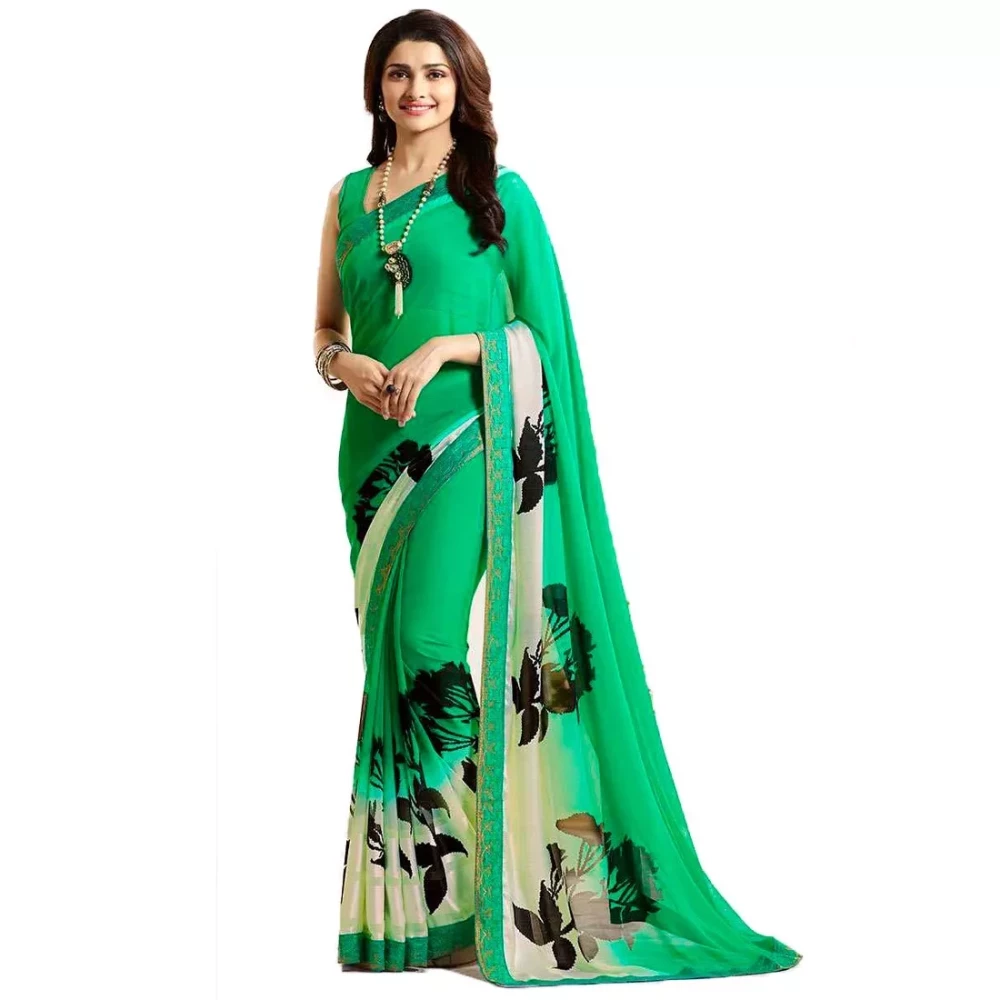 Printed Bollywood Georgette Green Saree